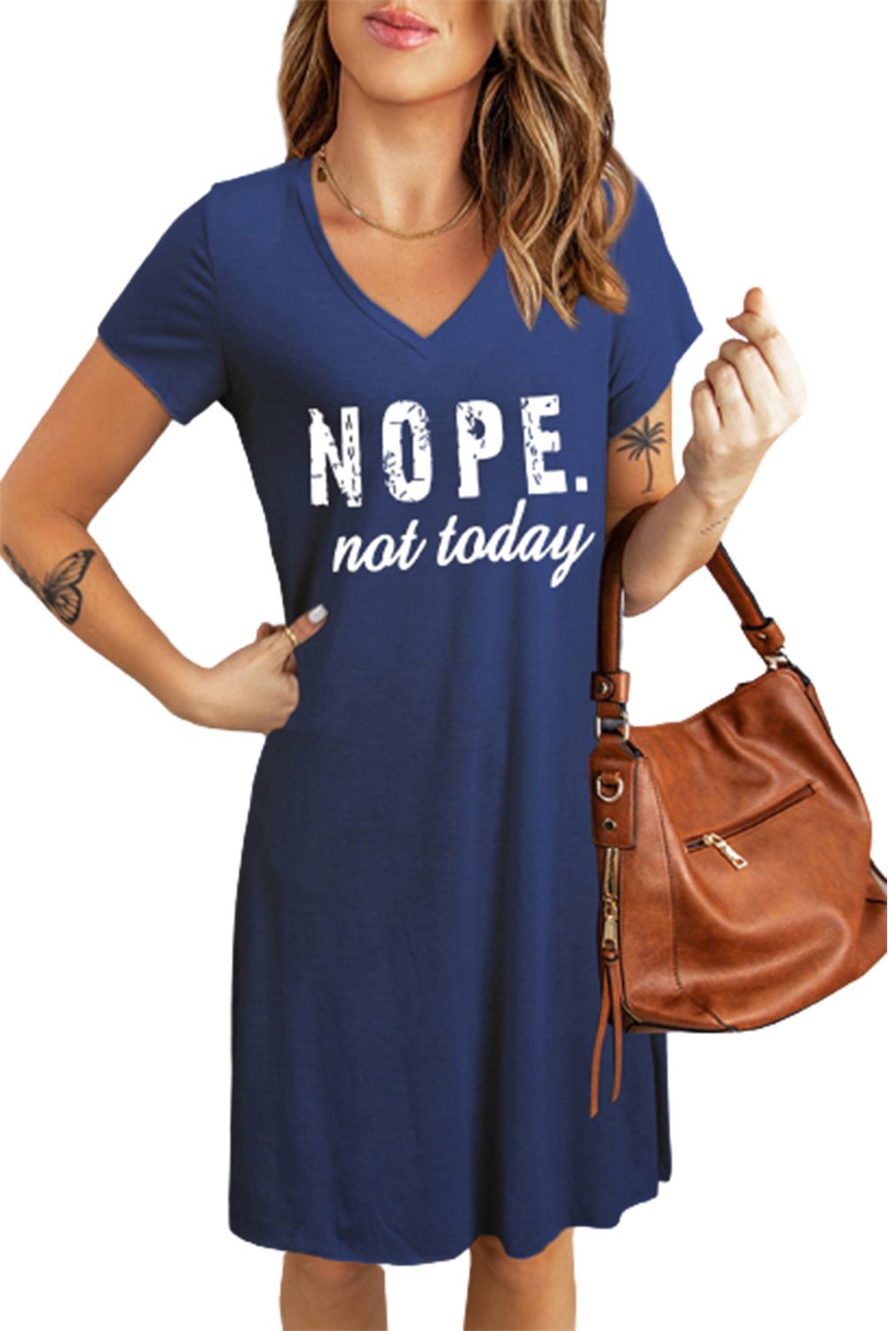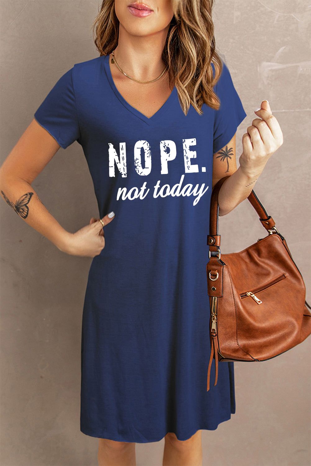 Blue NOPE. Not today Print V Neck T-shirt Midi Dress