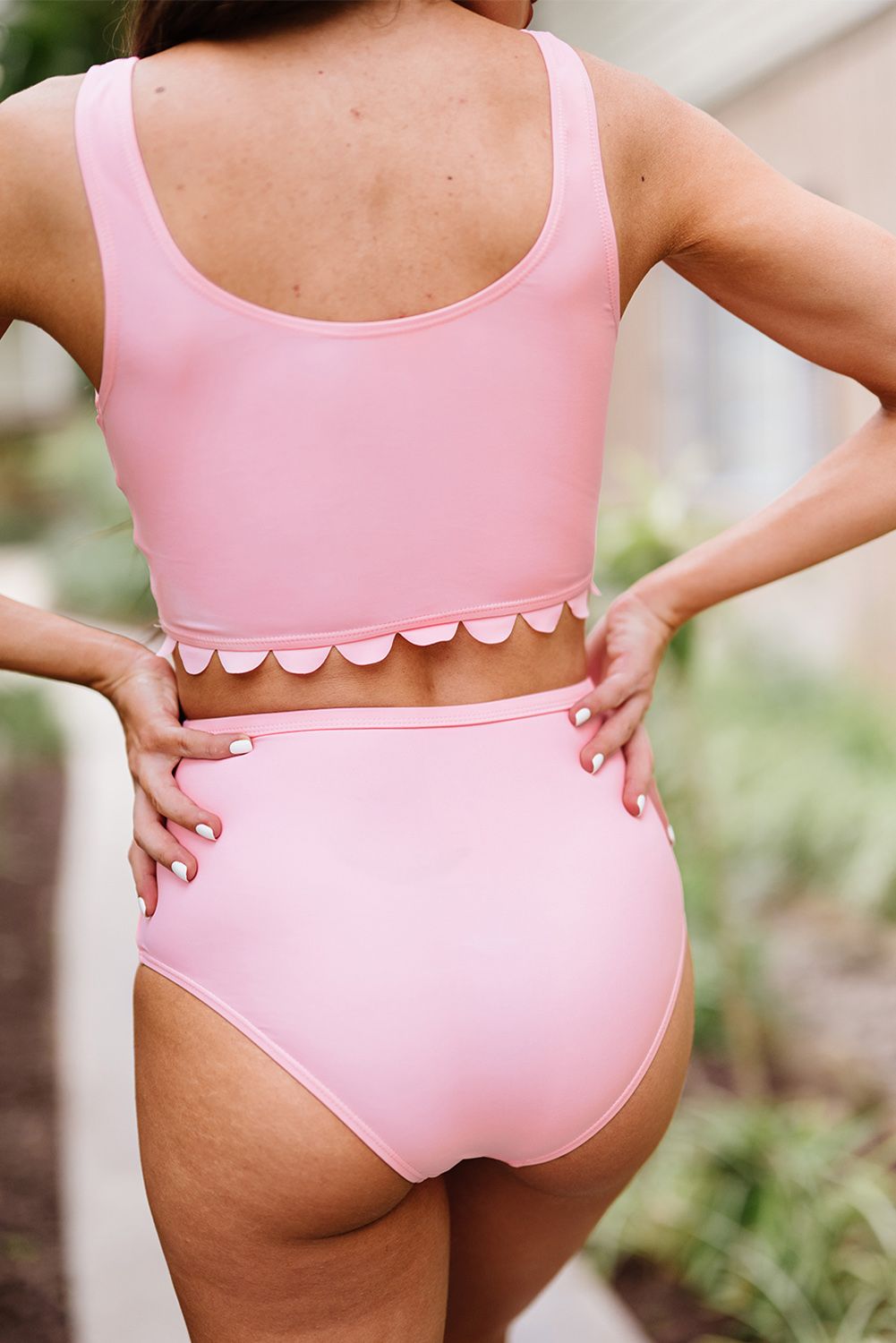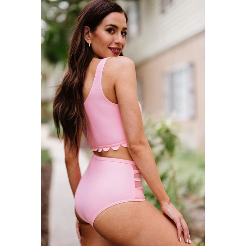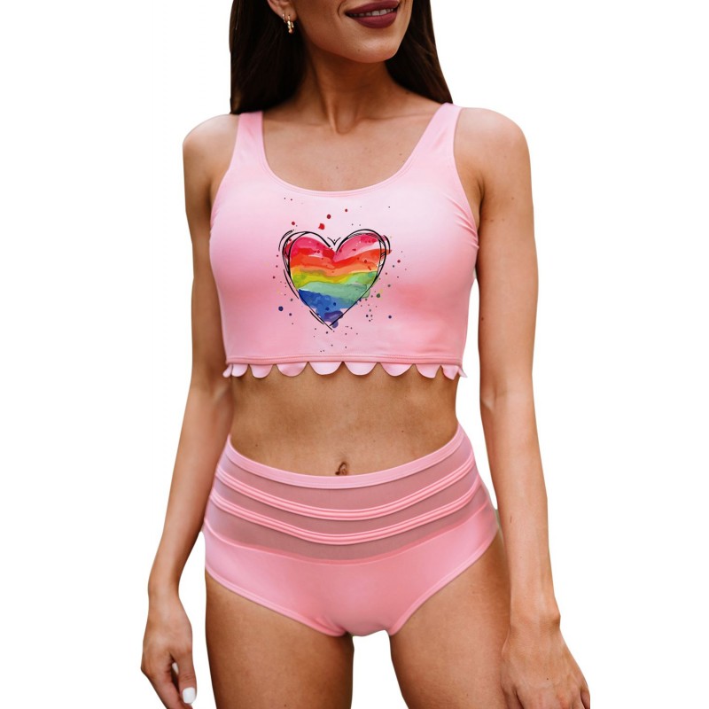 Colorful Heart Shaped Scalloped High Waist Bikini Swimwear