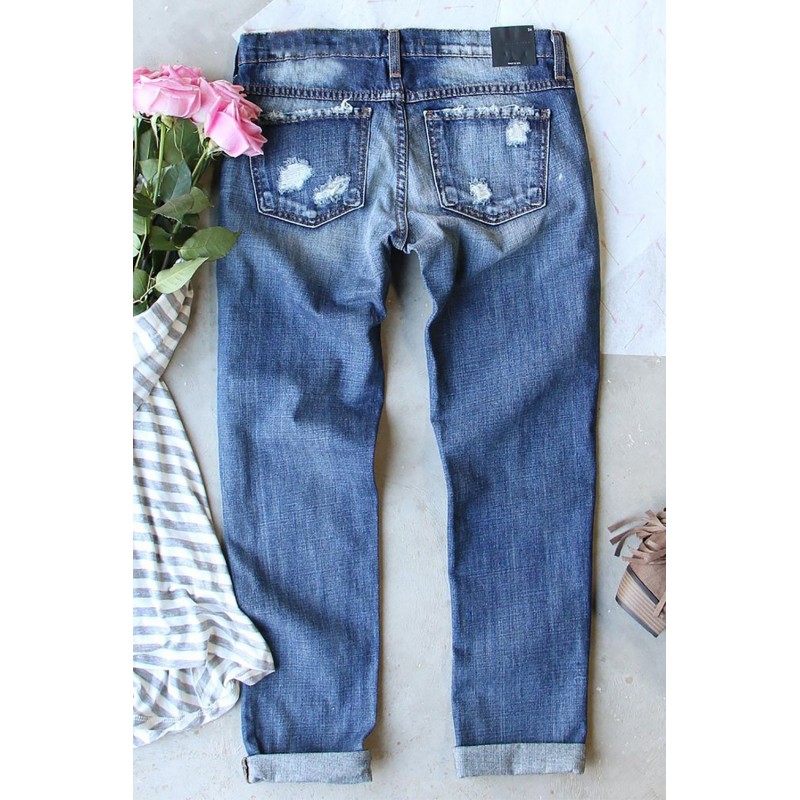 Western Aztec Pattern Splicing Distressed Jeans